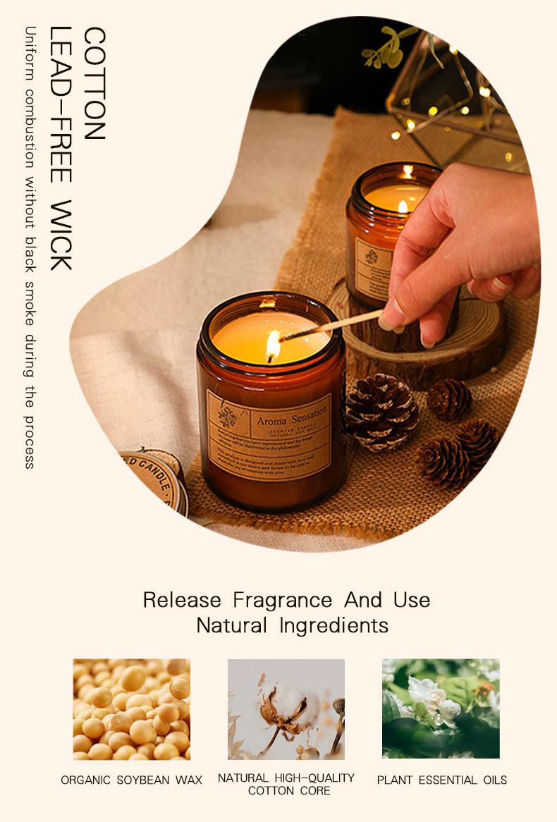 Venta al por mayor velas perfumadas de cera de soja de lujo en vidrio con fragancia personalizada con caja de papel Kraft para decoración del hogar